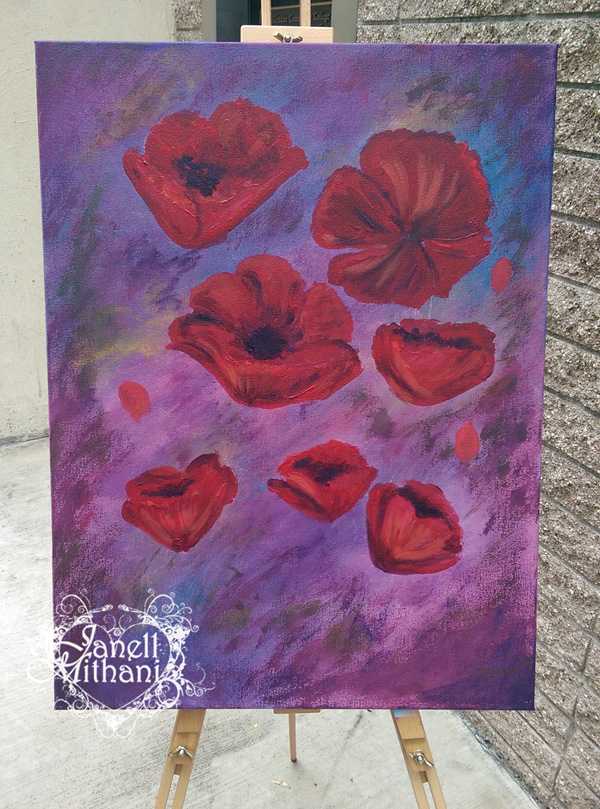 I just finished a painting for my daughter.  She is returning to college in Chicago in a few weeks, and will be sharing an apartment instead of living in the dorms.  She wanted a painting of poppies to remind her of home in sunny California.  So… “Poppies for Jazz” it is!