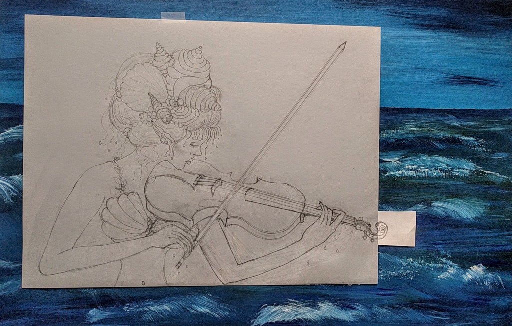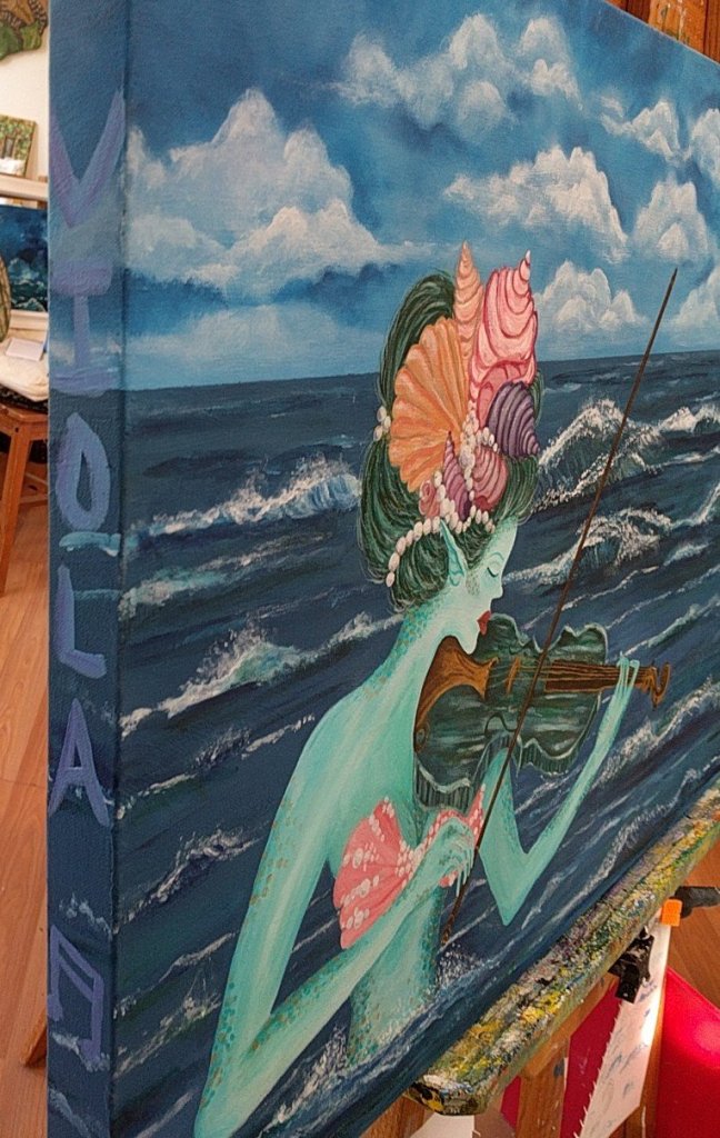 This is a video I created and posted to my Instagram account of me painting. It is a new painting I have been working on for the past few months, “Viola.” It is the first painting in my new series, “Musical Mermaids.” I’ve actually been creating sketches for this series for about a year, but this is the first chance I have had to create one as a painting.